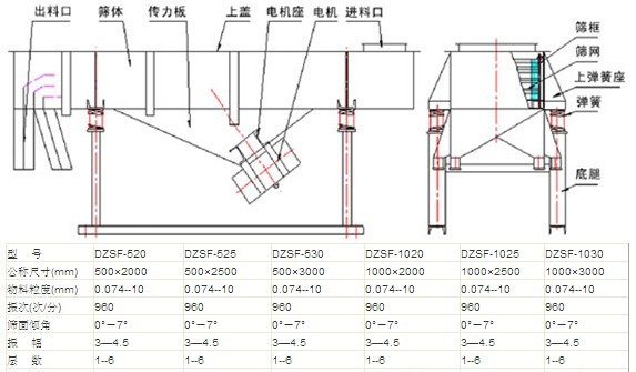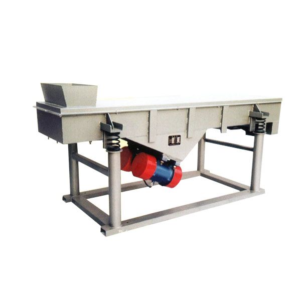 當(dāng)縱向安裝在篩體上的兩臺(tái)振動(dòng)電機(jī)兩端的偏心塊便產(chǎn)生額定激振力,其產(chǎn)生在橫向的激振力相互抵銷,其縱向的激振力通過(guò)傳振體傳遞到整個(gè)篩面上,從而使篩面上的物料受其激振力而在篩網(wǎng)面上向出料口方向跳躍運(yùn)動(dòng)。小于篩孔的物料通過(guò)篩孔落到下層,大于篩孔的物料經(jīng)連續(xù)跳躍后,經(jīng)出料口流出,由于篩分過(guò)程合理,可將物料經(jīng)振動(dòng)篩分級(jí)后,取得幾種不同顆粒的物料,完成物料的分級(jí)。